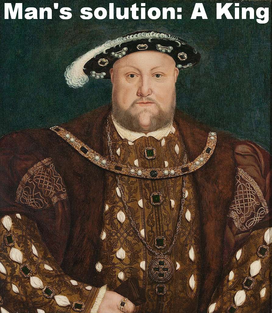 Instead of asking God to appoint a better man or woman to judge them, the elders – that is, the leaders of the twelve tribes – wanted to change to a completely different system of government. They could have taken the responsibility themselves by setting up a democracy. But they didn’t. They chose autocracy, putting all the responsibility on the king who Samuel would appoint in place of his own sons. A powerful man who would take the responsibility, both making and upholding the law, and to lead them in battle. There is no reference to God’s role in the matter.