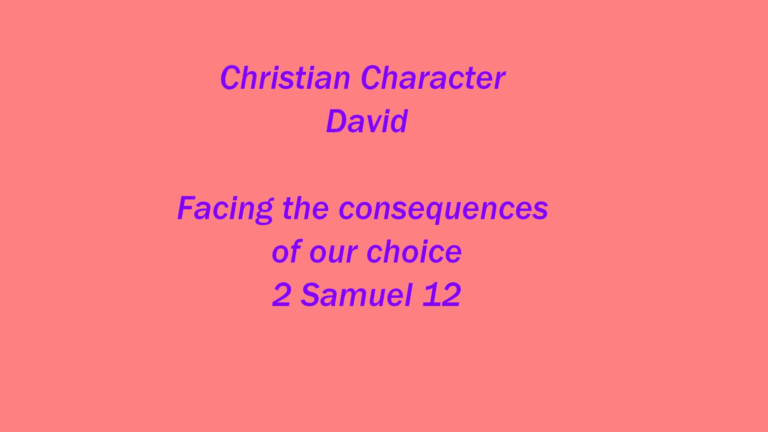 Today in our quick tour of the books of Samuel, we’re looking at the second half of the second book. The story of King David is a good example of what happens when someone fails badly in their relationships with God and other people by making the wrong choice, about what the consequences might be, and what can be done about it.